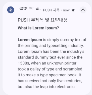 해당 인자에 BigTextStyleInformation을 적용시키게 되면, 푸시를 확장할시,