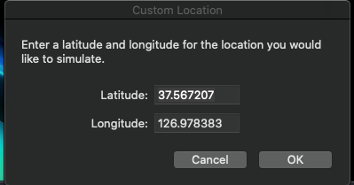 지도관련 어플을 간단히 만들고 있는데 핸드폰으로 디버깅하는건 시간이 많이 걸려서 Simulator를 사용하고 있는데