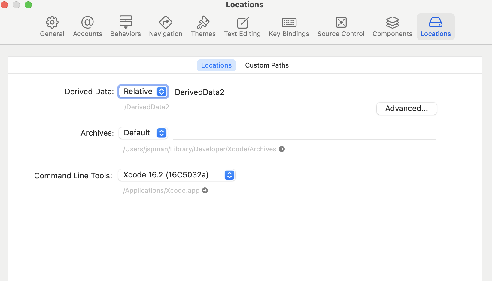 거기에서 Locations를 선택하시고 DerivedData2로 변경을 합니다.