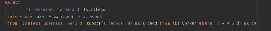 프로시저를 만들다보니 여러개로 선언한 변수에 한번에 값을 넣어야하는 것이 생겼네요.