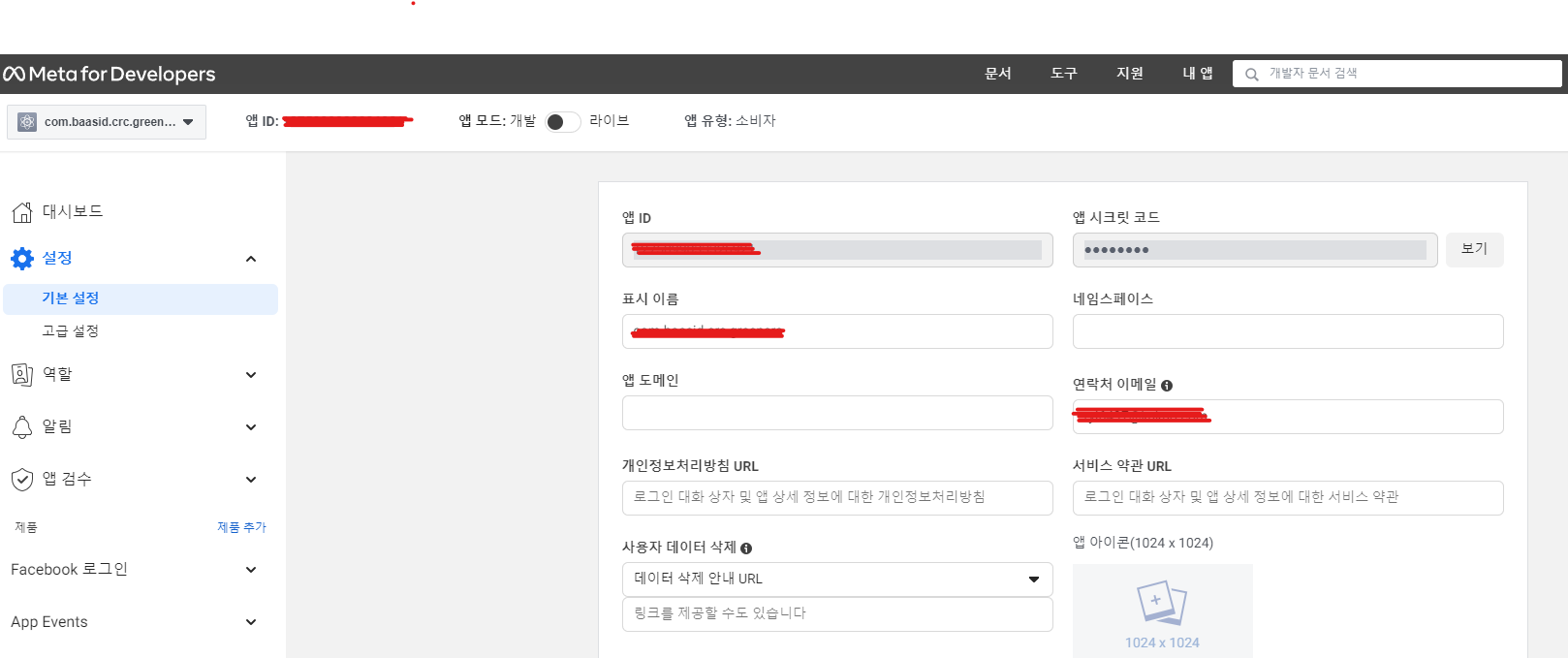 앱 ID와 앱 시크릿 코드를 미리 복사해두도록 합시다.